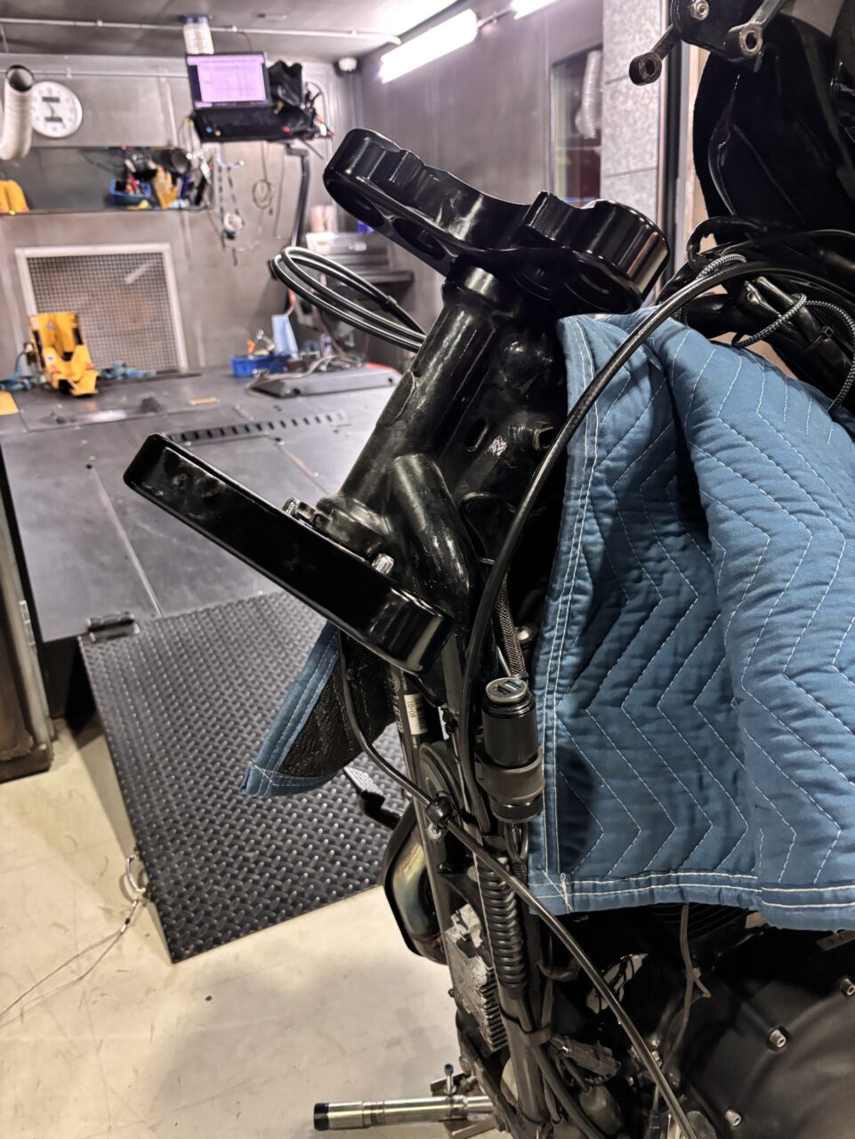 お預かりした車両が元々フォークが伸びている状態だったのですが、レイクすることでよりチョッパーな見た目になります。