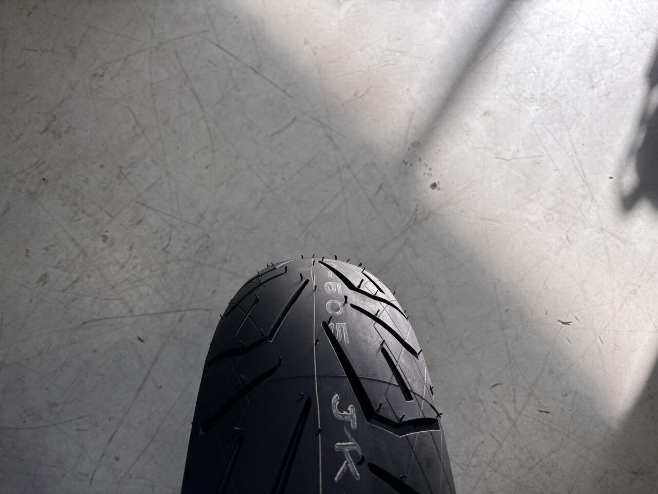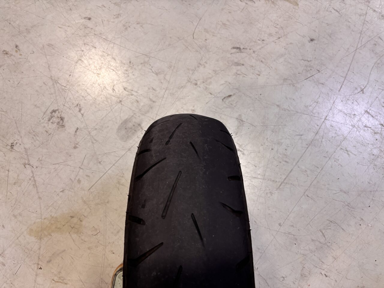 写真の通り元のタイヤは溝もなくものすごい片減りしてました。