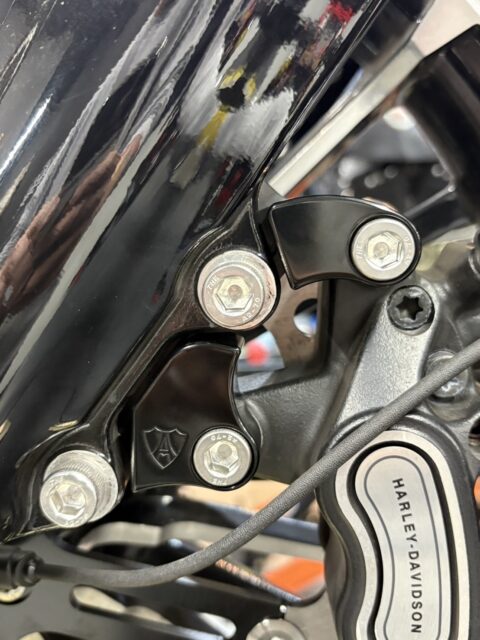 大径ローター、付属のブラケットでキャリパーの位置が変わり、フロントにしっかりと迫力が出ます。