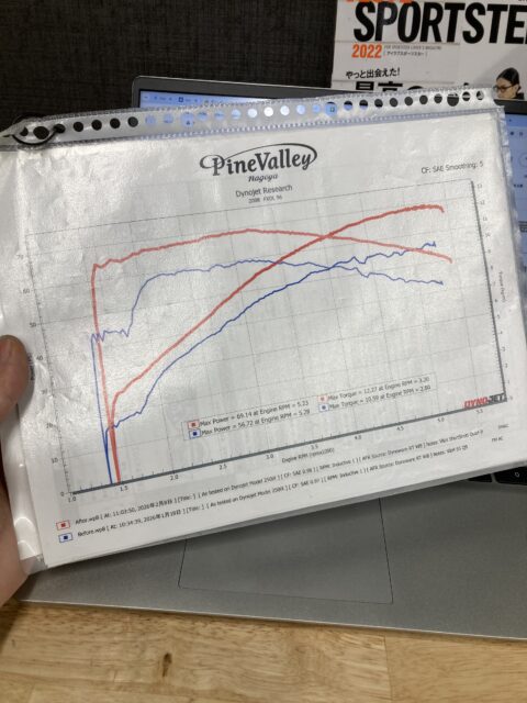 ご入庫時はパワー、トルク共にいまひとつでグラフもなかなかの荒れっぷりでしたが、チューニング後は大幅に性能UP!
