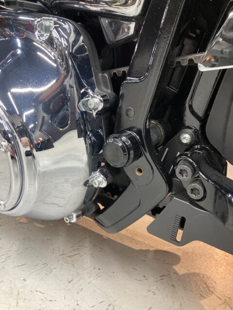 アクスルやスイングアームのシャフト部など、悪目立ちしがちな部分はこういったパーツを取り付けるだけで一気に引き締まりますね。