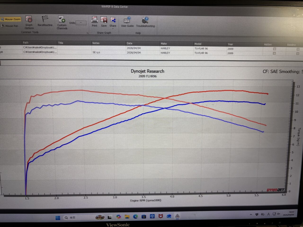 燃調の最適化でここまでパワー、トルク共に向上できます。