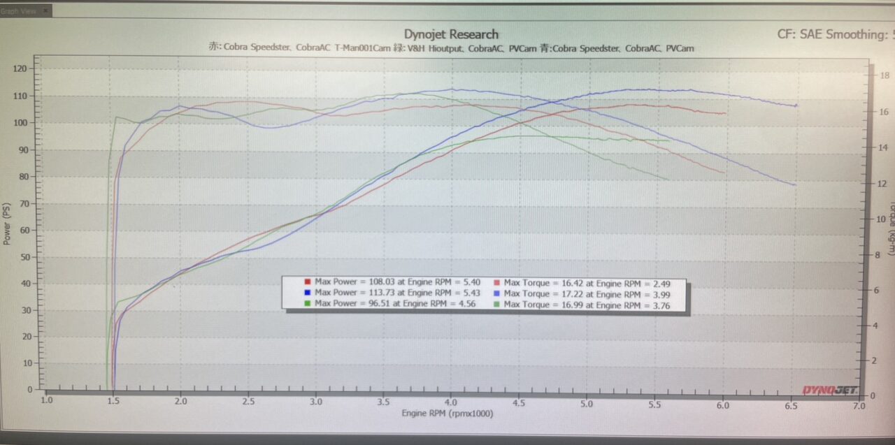 今回で3回目のチューニングですがカムやマフラーによってグラフに特徴が顕著に現れるので目で見ても実感できると思います。