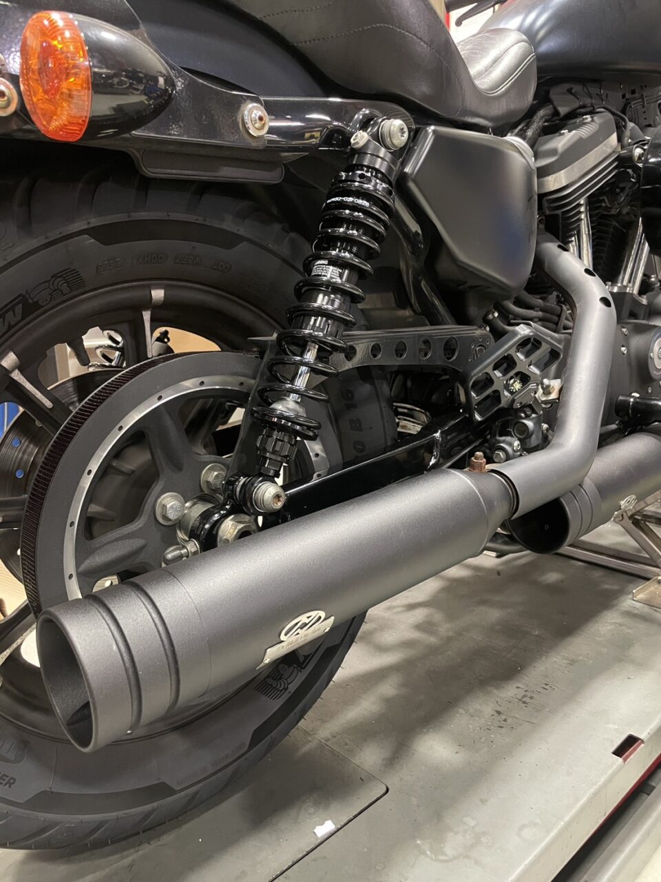 マフラーとリヤサスペンションの交換を行いました。