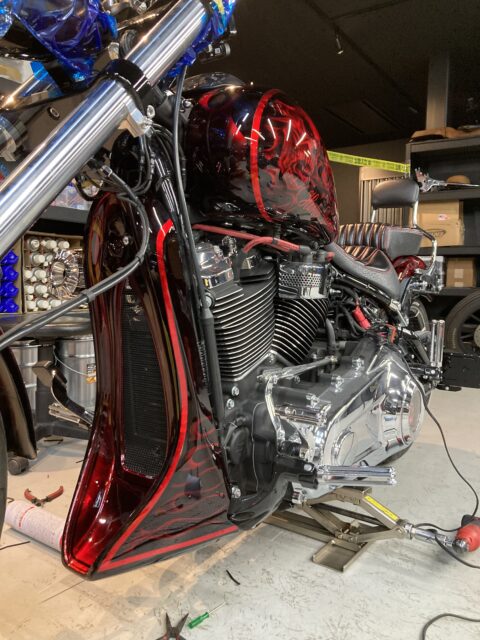 多数のカスタム作業を進めているFXBR、カスタムペイントに出していた外装部品が戻ってきたので、組み付けを進めております!