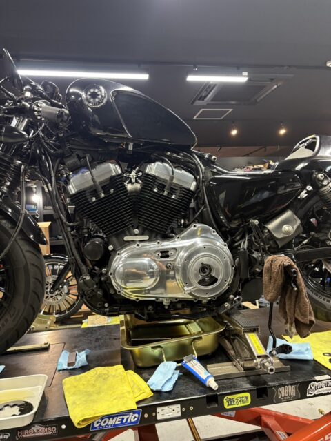 本日は、XL1200Xのプライマリーカバー交換です。